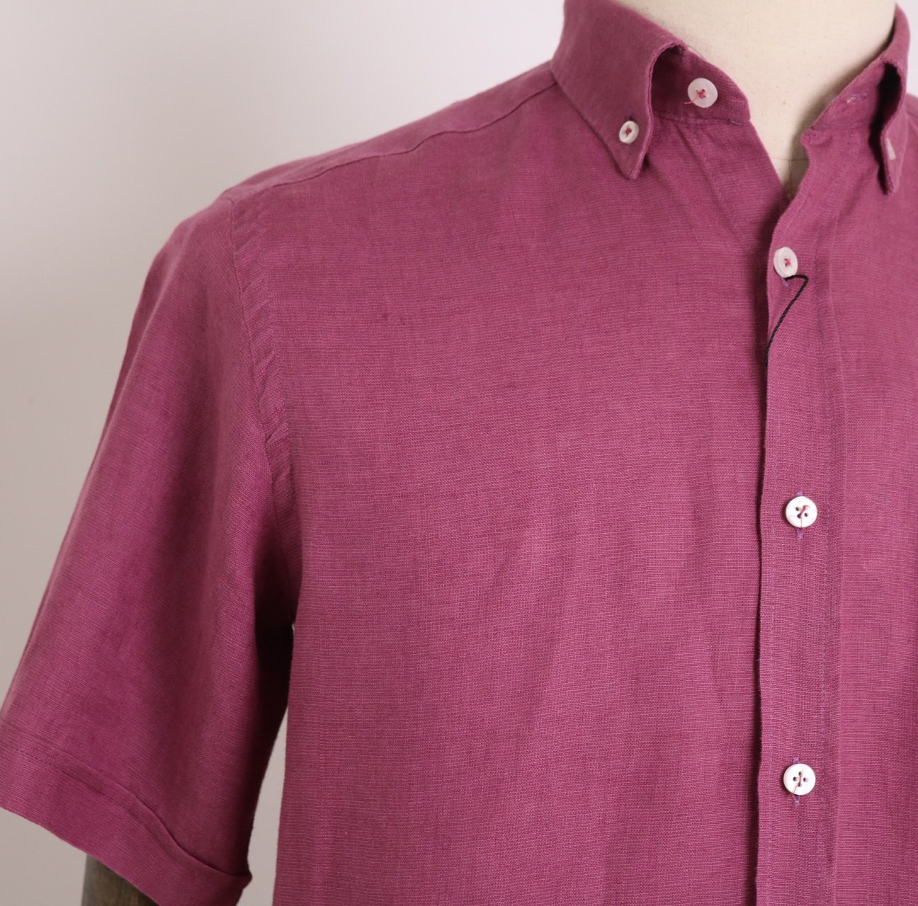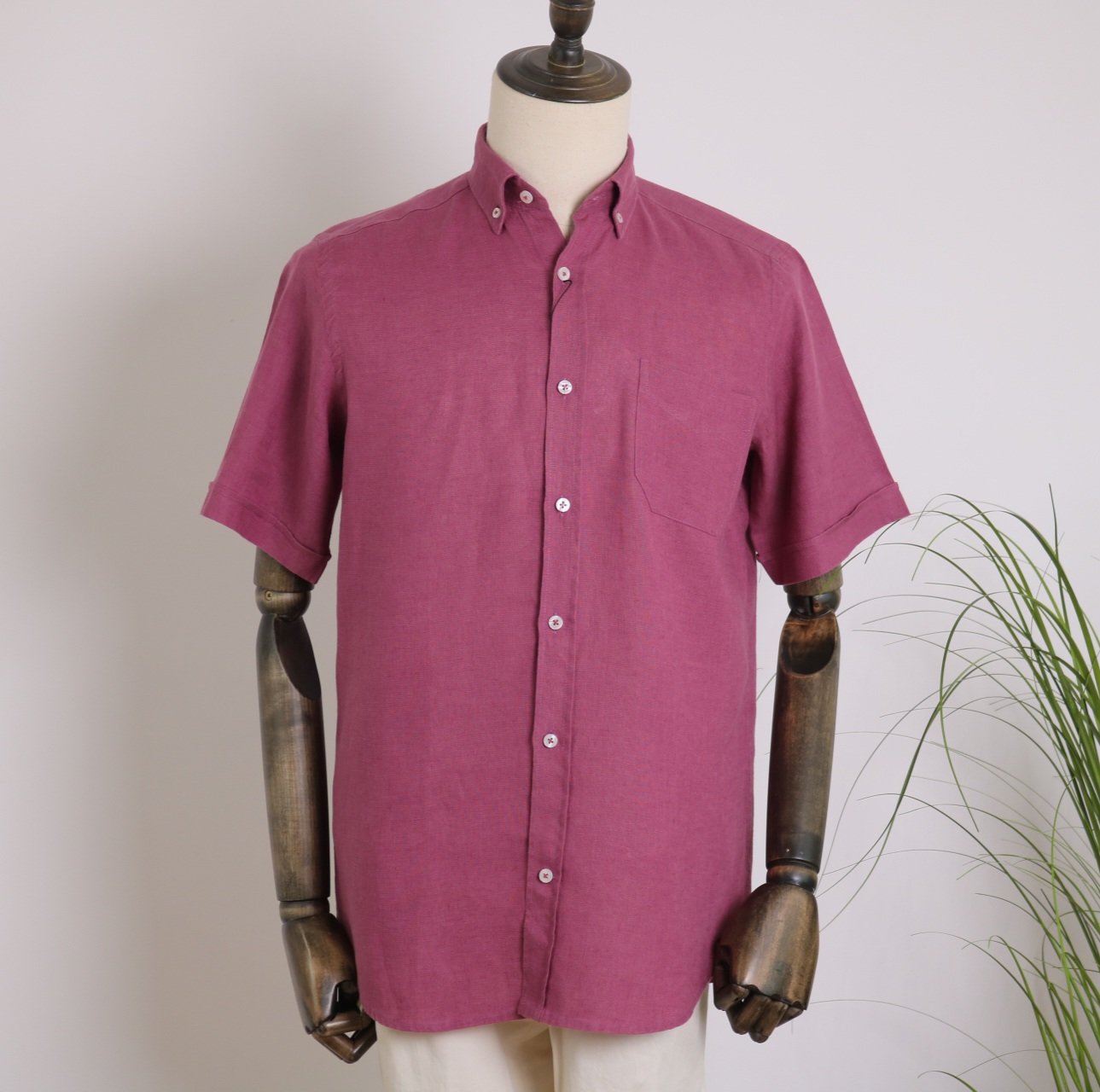 Camisa 100% lino tintada, manga corta, color burgundy